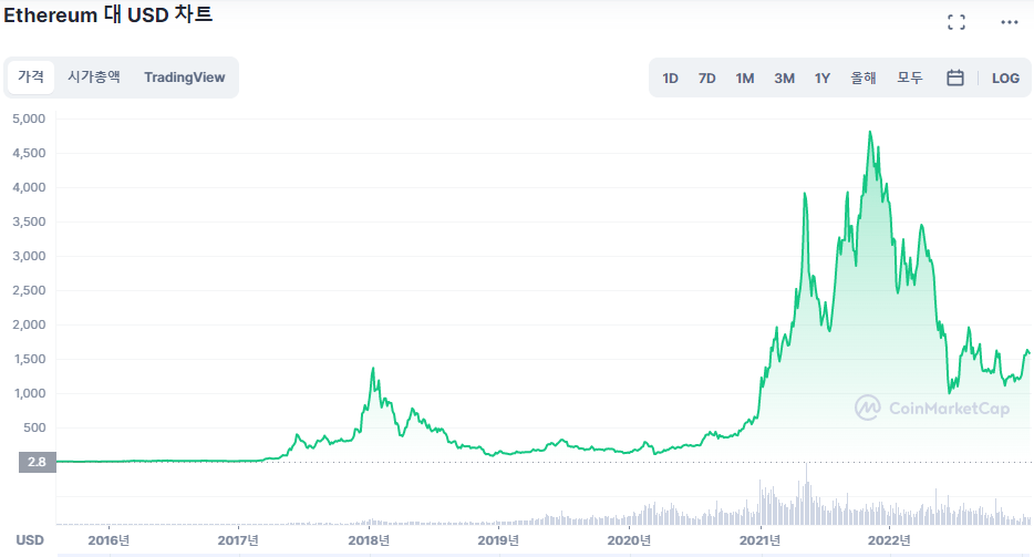 2015년은 이더리움의 기원이며 그때 이더(ETH) 가격은 1달러 미만이지만 투자자들에게 그의 개발 잠재력을 중시합니다.이더리움은 블록체인을 만들어 가상화폐뿐 아니라 탈중앙화 애플리케이션(댑)을 만들거나 NFT를 구매할 때 사용하는 스마트 컨트랙트 거래를 할 수 있도록 하겠다는 의도여서 암호화 애호가들의 관심을 끌었습니다.