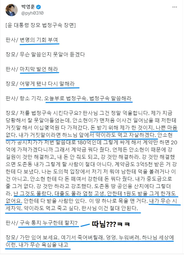 그는 “윤 대통령은 대선 후보 시절 ‘장모 사건은 과잉 수사’, ‘억울한 면이 있다’, ‘피해를 준 건 아니다’, ‘사기를 당했다’고 밝힌 바 있다”며 “자신의 당선을 위해 장모 사건을 덮고 허위의 사실을 유포한 것”이라고 주장했다.