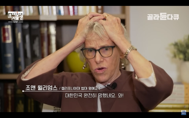 우리나라 합계출산율을 들은 미국 조앤 윌리엄스 캘리포니아대 명예교수의 반응입니다.