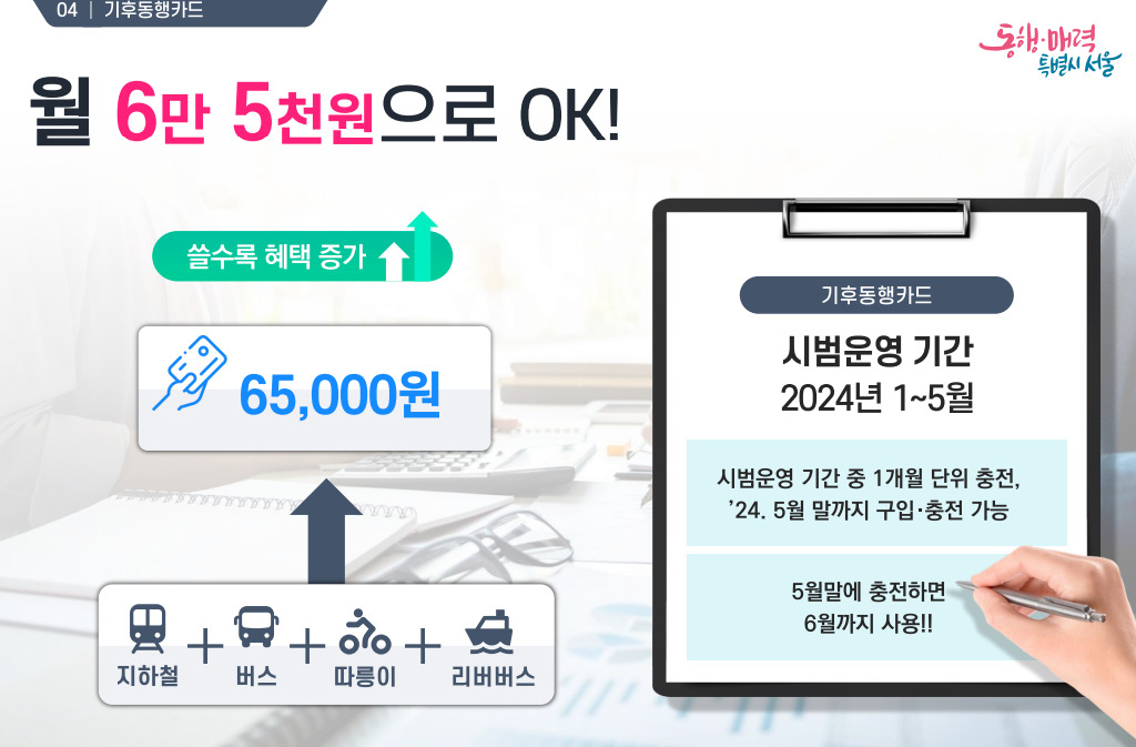 또 약 50만 명의 시민이 1인당 연간 34만 원 이상의 할인 혜택(따릉이 이용 포함)을 받게 될 것으로 전망했습니다.