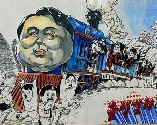 고교생 작가의 풍자카툰 ‘윤석열차’. 지난해 10월 한국만화영상진흥원이 주관한 부천만화축제에서 전국학생만화공모전 금상 수상작으로 전시됐다. 그러나 후원 기관인 문체부가 행사 취지에 어긋난 정치적 주제의 작품이라며 진흥원에 엄중 경고 조치를 내려 표현의 자유 논란이 불거졌다.