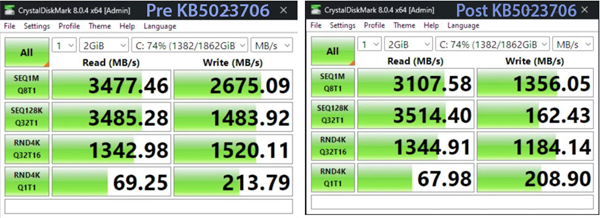 톰스하드웨어는 SSD에 많은 부담을 주는 애플리케이션을 쓰고 있다면 SSD 성능이 눈에 띄게 저하될 수 있다고 전했다. 마이크로소프트가 이런 문제를 해결할 윈도우 11 프로용 패치를 개발 중인지는 알려지지 않았다.